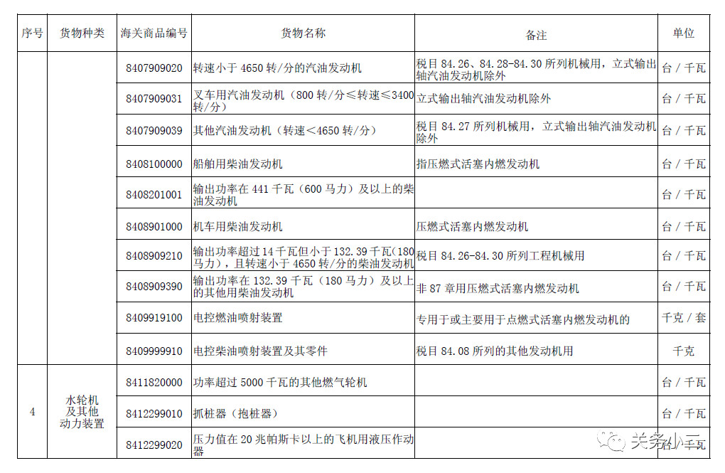 一、取消对118个海关商品编号项下货物实施的自动进口许可措施。上述货物共15种,包括汽轮机、汽车产品、发动机(非87章车辆用)及关键部件、水轮机及其他动力装置、化工装置、食品机械、造纸机械、纺织机械、金属冶炼及加工设备、电气设备、铁路机车、移动通信产品、船舶、医疗设备、游戏机等(详见附件1)。